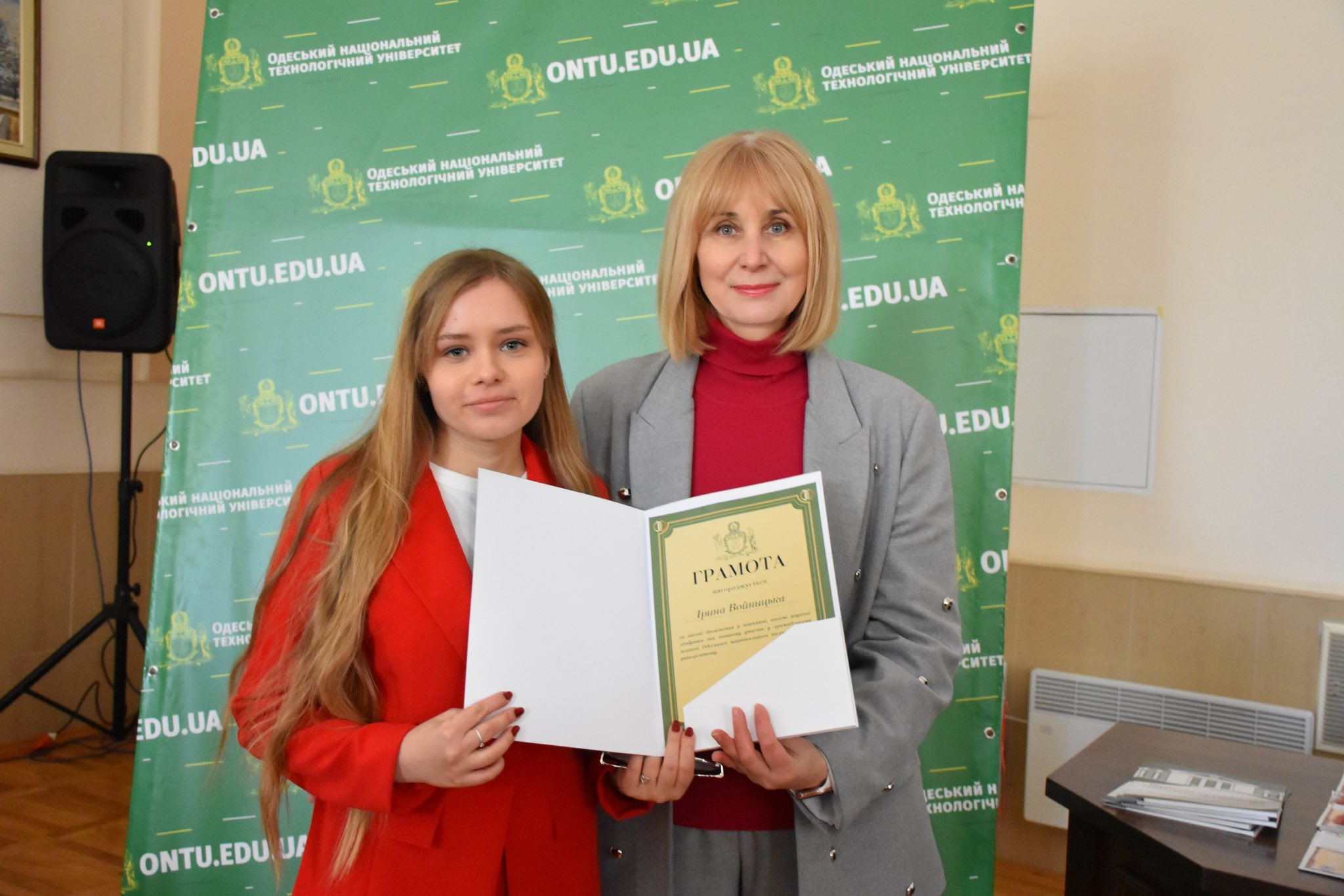 20 січня 2026 року, під час урочистого вручення дипломів здобувачам СВО «Магістр», Ірина була відзначена Почесною грамотою ректора університету — за високі досягнення у навчанні, вагомі наукові здобутки та активну участь у громадському житті ОНТУ.