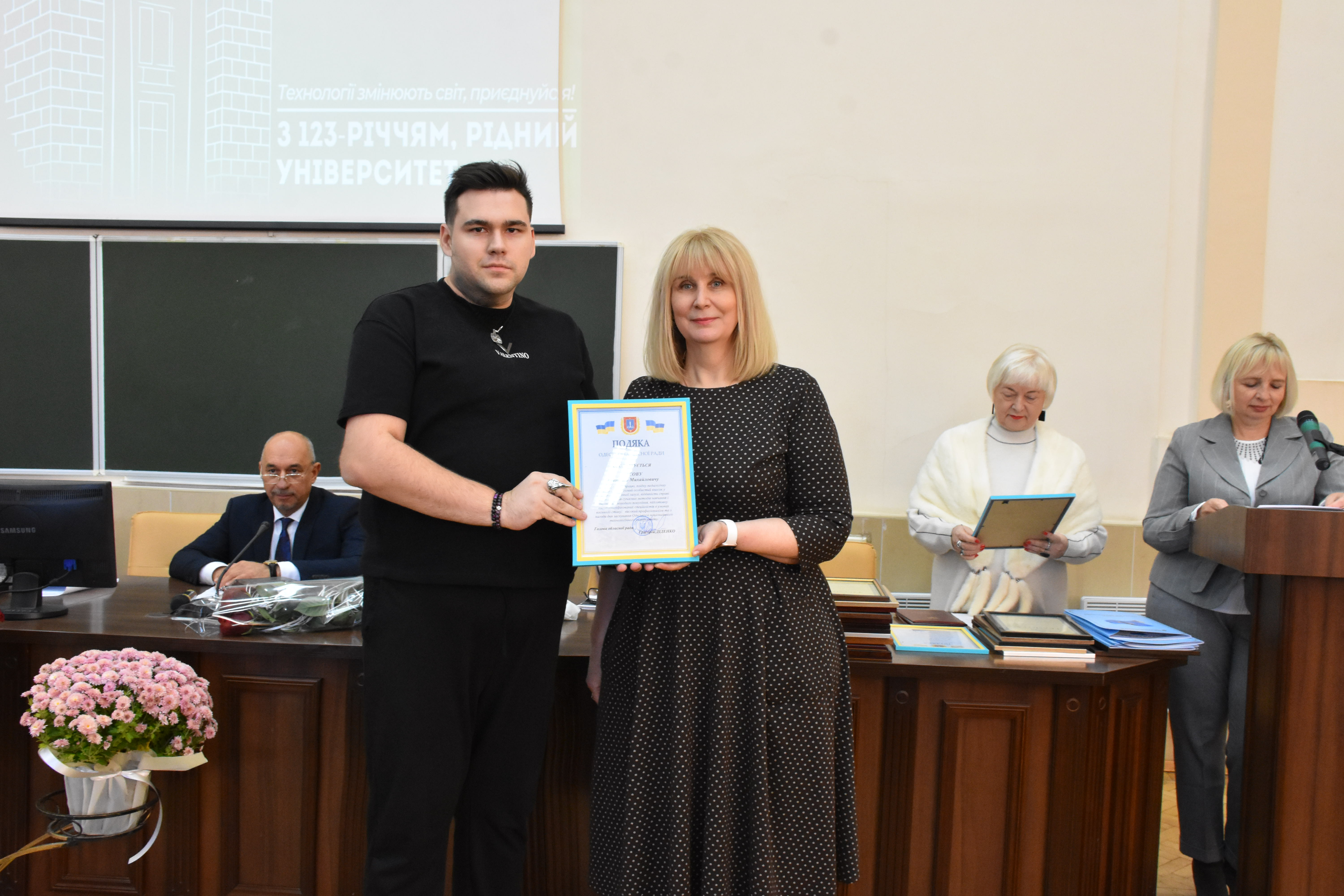 Подяку вручено за сумлінну працю, плідну педагогічну діяльність, вагомий особистий внесок у розвиток освітньої галузі, відданість справі, впровадження сучасних методів навчання і виховання молодого покоління, підготовку висококваліфікованих спеціалістів в умовах воєнного стану, високий професіоналізм та з нагоди Дня заснування Одеського національного технологічного університету.